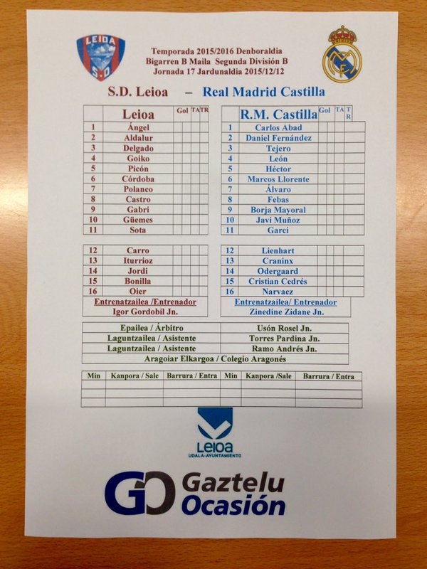 Bienvenidos a la retransmisión en directo del encuentro entre el RM Castilla y el Leioa. Los de Zidane visitan el Sarriena en busca de un resultado positivo que meta presión al Barakaldo en la lucha por el liderato del Grupo II de Segunda División B.