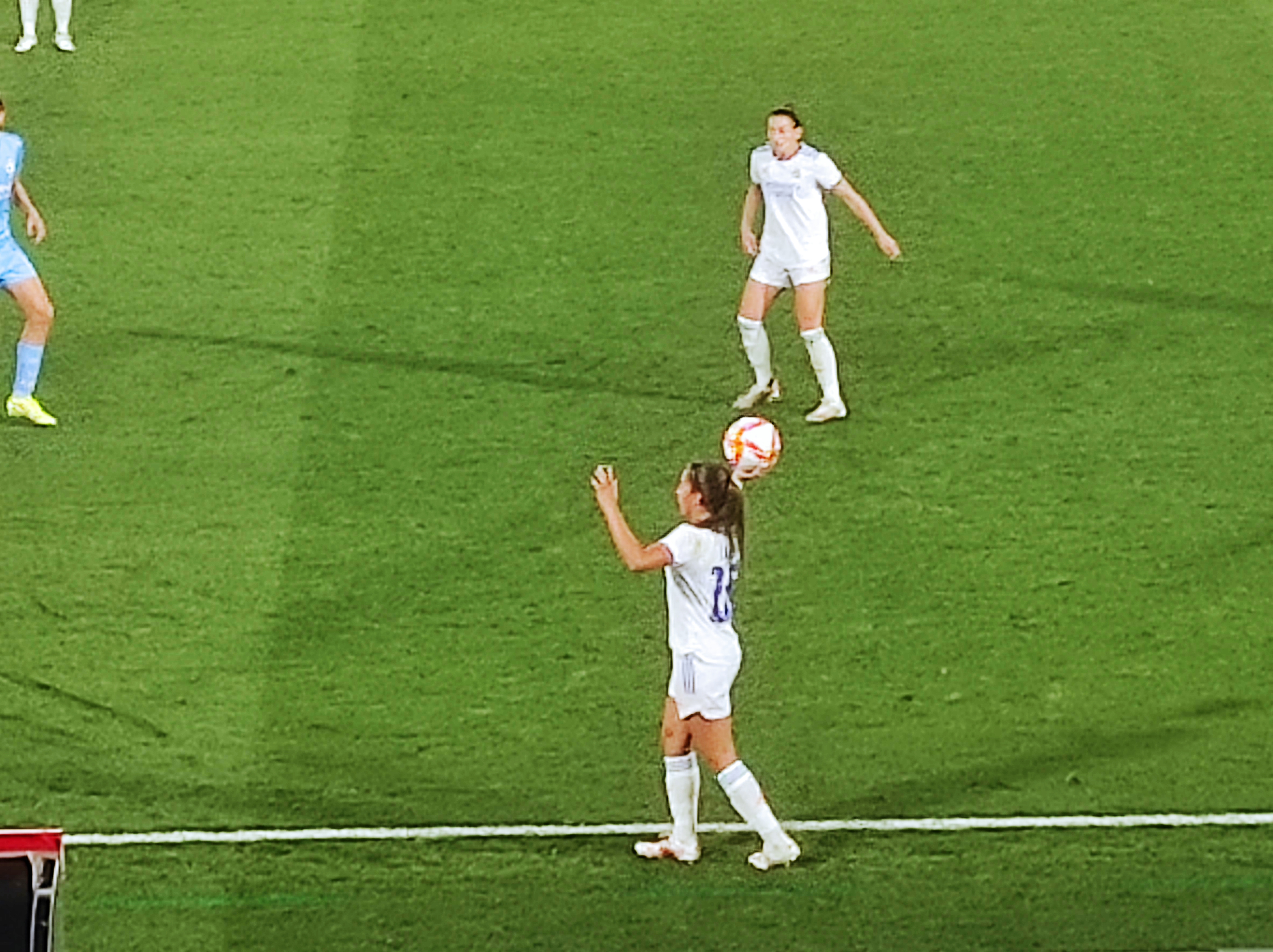 El Manchester City seguía buscando el empate y Raso estrellaba el balón en el larguero.El conjunto inglés seguía teniendo la posesión y acercándose al área madridista pero las de David Aznar defendían con todo para mantener la ventaja. Restistieron las juagadoras madridistas en los últimos minutos para conseguir una clasificación histórica para fase de grupos de la Champions.