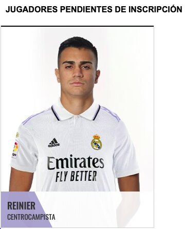 En la página web del Real Madrid (realmadrid.com) han actualizado los dorsales y ya se puede ver a Eduardo Camavinga, por ejemplo, con el '12'. El resto siguen con sus números anteriores y el único que no aparece integrado en la lista es Reinier, que se encuentra en: "pendiente de inscripción". Otros clubes como el Real Valladolid parecieron mostrar su interés, pero se ha estancado la operación con el brasileño por salir y aún permanece entrenándose en Valdebebas al margen de sus compañeros. No viajó a la gira de pretemporada en Estados Unidos, ni tampoco a Helsinki por la Supercopa de Europa, un claro síntoma de que en el Real Madrid no tiene hueco -su condición de extracomunitario le penaliza- y se busca una solución.