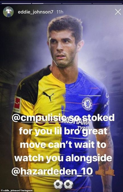 El ex jugador estadounidense Eddie Johnson publicó en su perfil de Instagram una foto de Christiano Pulisic felicitándole por su fichaje por el Chelsea. Rápidamente y tras ver que aún no se había hecho nada oficial, borró la publicación. De oficializarse el traspaso, el conjunto londinense conseguiría al sustituto de Eden Hazard cuya salida al Real Madrid es inminente, aunque tal y como ha expresado el belga en más de una ocasión y hemos anunciado aquí en Bernabéu Digital; esa operación se producirá hasta verano.