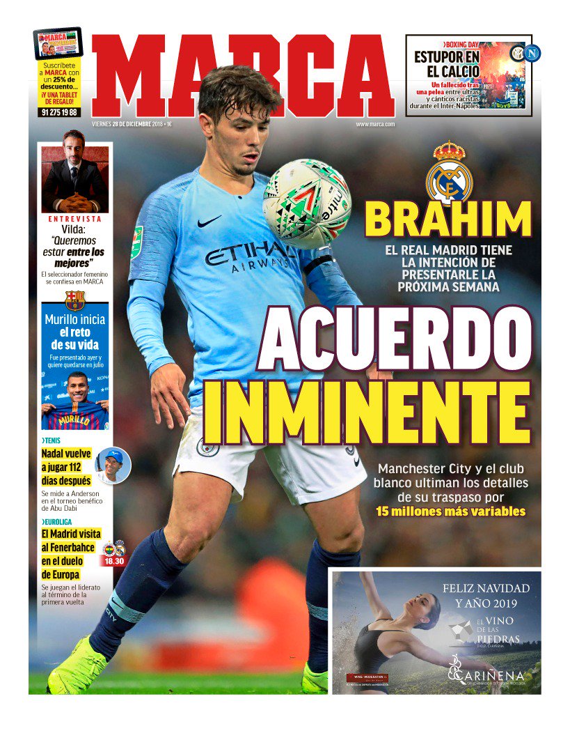Según adelanta Marca, Brahim se convertirá en el primer fichaje invernal del Real Madrid. El acuerdo de traspaso está cerca de cerrarse por 15 millones más variables que le convertirán en jugador blanco para las seis próximas temporadas. Brahim será jugador de la primera plantilla cobrando 3,5 millones anuales brutos.