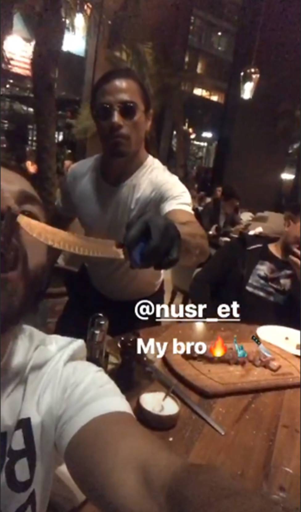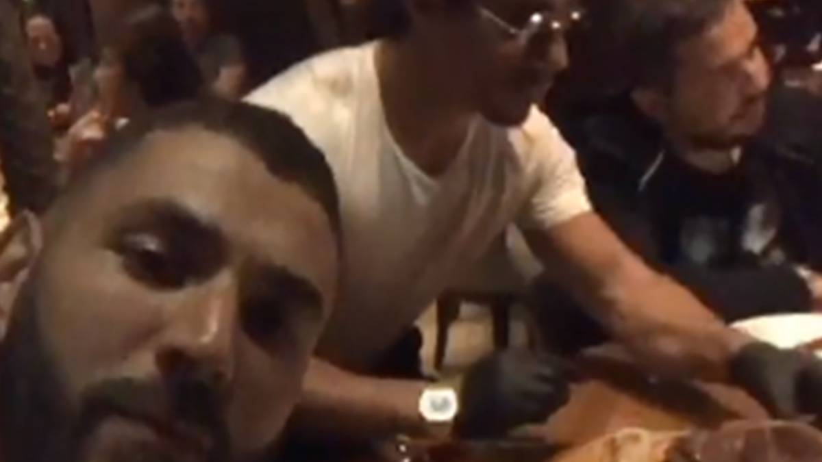 El delantero del Real Madrid ha compartido unas instantáneas en la que se le puede ver cenando en el restaurante de Salt Bae, comiendo directamente del cuchillo que porta el reconocido chef turco.