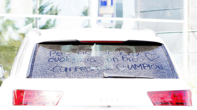 Isco Alarcón apareció en la clínica Sanitas La Moraleja con una pintada en su luna trasera. Aprovechando la suciedad de vehículo, alguien le ha dejado escrito un mensaje: "Pero no un bro cualquiera, un bro campeón de Champions". ¿Sería Marco Asensio el autor de la travesura?