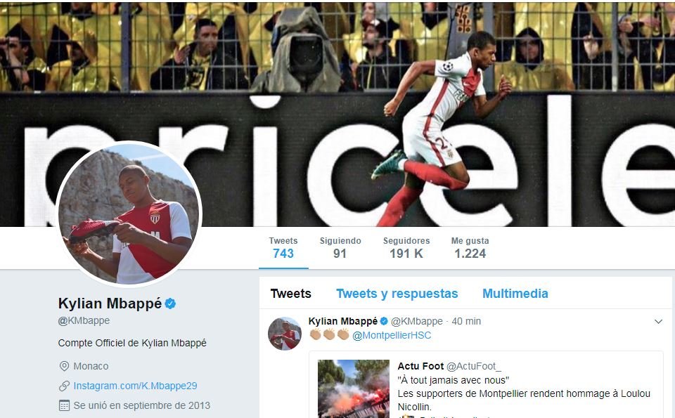 Kylian Mbappé es el nombre de moda del verano. Cada hora da a luz nueva información acerca de la joven perla del Monaco, que se debate entre la permanencia en el equipo del Principado otro año o aterrizar este mismo verano en la capital española. El último episodio de esta larga historia lo acaba de protagonizar el propio jugador, quién sabe si inconscientemente o no, al retirar de la biografía de su cuenta de Twitter que es jugador es jugador perteneciente al AS Monaco, pudiendo ser esta maniobra un guiño al conjunto dirigido por Zinedine Zidane.