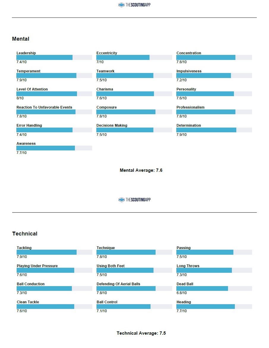 No podemos olvidar el aspecto mental (7.6/10), ya que registra un nivel de atención alto (8/10), compostura (7.8/10) y carisma (7.6/10). No hay ninguna duda de que se trata de uno de los defensas con más proyección de Europa y es normal que el Real Madrid siga sus pasos. Veremos cómo se recupera de la lesión y si finalmente encaja en la política de fichajes del club de cara a la próxima temporada.
