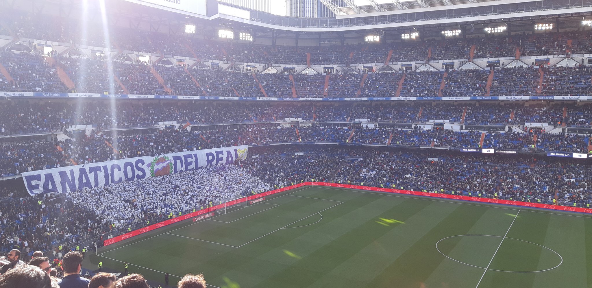 La Grada de Animación del Real Madrid desplegó un tifo para este derbi frente al Atlético de Madrid en el que se podía leer "Fanáticos del Real".