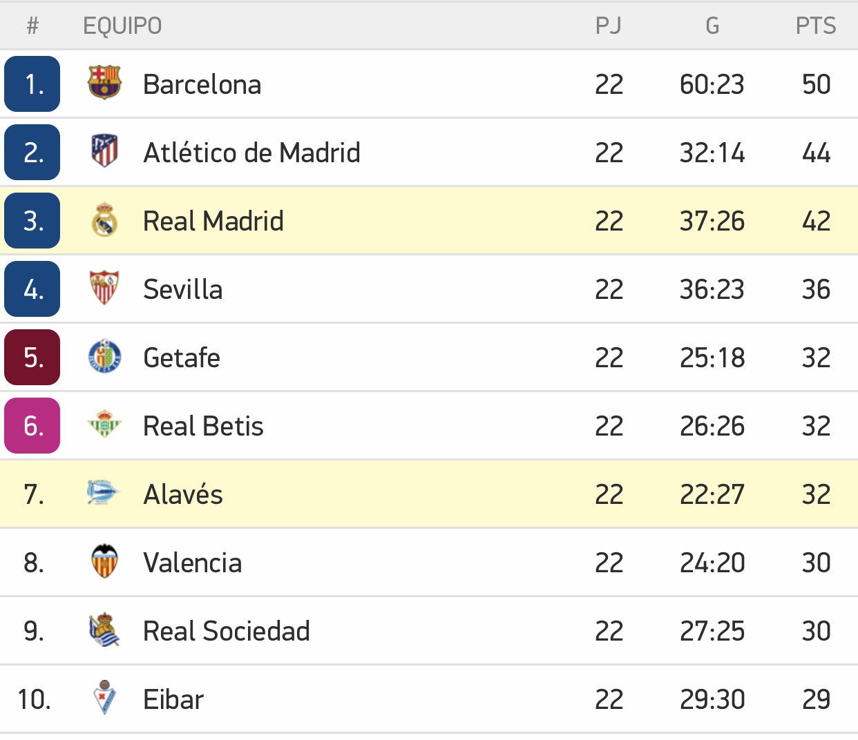 CLASIFICACIÓN - El Madrid a solo dos puntos del Atlético de Madrid, próximo rival en Liga
