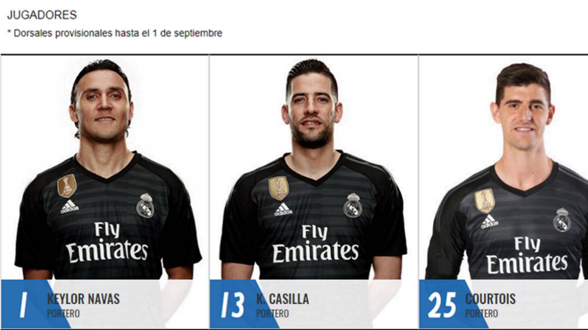 Aunque el propio club se encarga de afirmar que son de forma provisional. Kiko Casilla tiene todas las papeletas para marcharse y dejaría libre el dorsal 13, muy del gusto de Courtois. Además, el joven ucraniano Andriy Lunin no aparece en la plantilla del primer equipo, por lo que su cesión parece inminente.