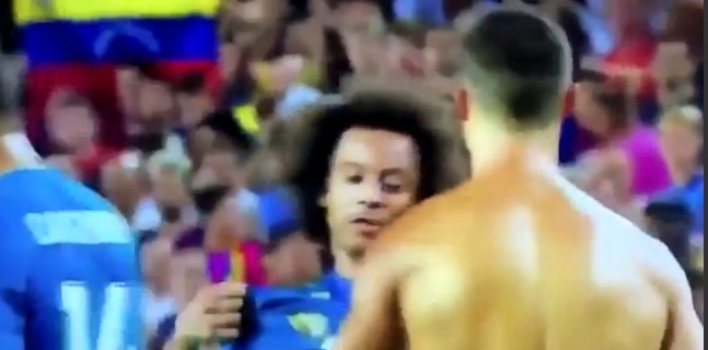 Todo parecía la venganza de CR7 hacia el argentino pero, tras unas imágenes de Deportes Cuatro, se puede ver como es Marcelo el que, tras recoger la camiseta del 'Bicho' del suelo, se la da y le dice: "Muéstrala", a lo que Cristiano asiente y lo hace.