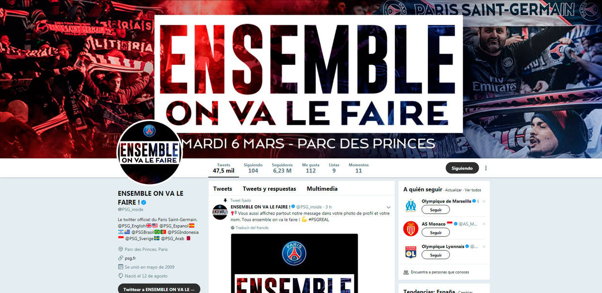 El PSG se cambia el nombre de sus cuentas de Twitter por "Juntos lo haremos"