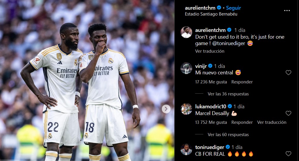 Después de su buena actuación en el eje de la zaga, el vacile del vestuario estaba asegurado. Y más aún cuando, encima, Tchouaméni lo pone en bandeja. "¡No te acostumbres hermano, es solo por un partido", comenta el ex del Monaco en su última publicación en Instagram, acompañada de una fotografía junto a Rüdiger. La llama ya estaba prendida.