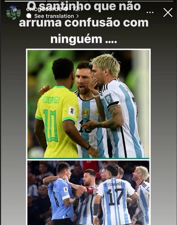 Precisamente, a este respecto, Eric Goes, el padre de Rodrygo, ha comentado en su stories de Instagram el incidente de su hijo con Messi en el partido en Maracaná, recriminando la acción del exfutbolista del Barcelona. "El santo que no se mete en problemas con nadie... ¿En serio, alguien se sorprende?", publicó con ironía el padre del futbolista del Real Madrid que, por cierto, terminó lesionado tras el encuentro frente a Argentina.