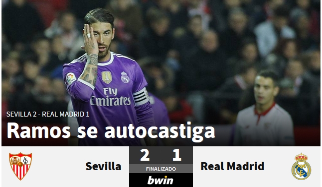 El diario AS hace alusión al gol en propia puerta de Sergio Ramos en el 1-1. "Ramos se autocastiga" es su titular en su portada de la página web.