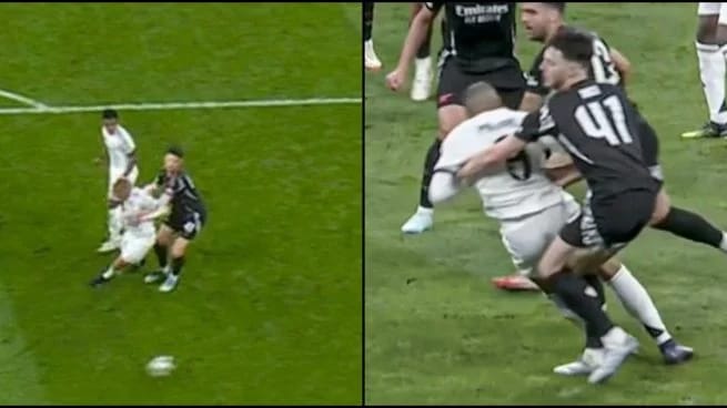 Esa felicidad iba a durar bien poco, porque el colegiado francés se llevaba la mano al pinganillo y estuvo varios minutos esperando a que el VAR le dijera algo desde la sala VOR. La decisión era dudosa para los ingleses, pero el agarrón era muy visible y el penalti era muy claro. El árbitro se fue a verlo a la pantalla del VAR y rectificó lo que había dicho desde el principio. No era penalti, y por lo tanto, le quitó la amarilla a Declan Rice. Los aficionados del Arsenal hicieron retumbar las gradas del feudo madridista.