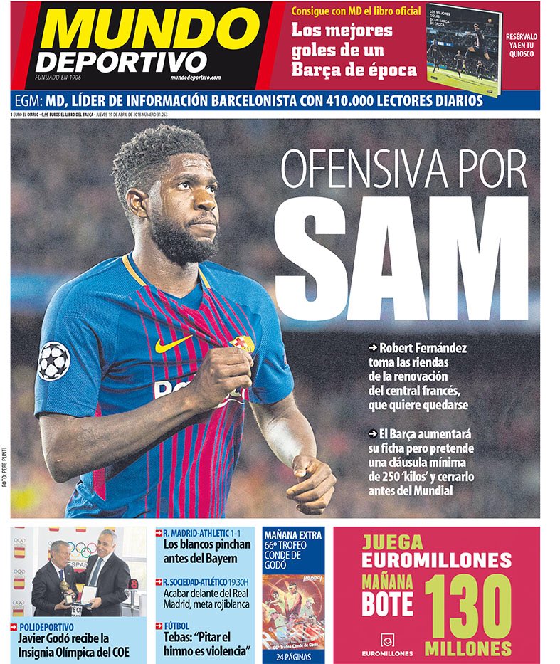 PORTADA - Mundo Deportivo: "Ofensiva por Umtiti"