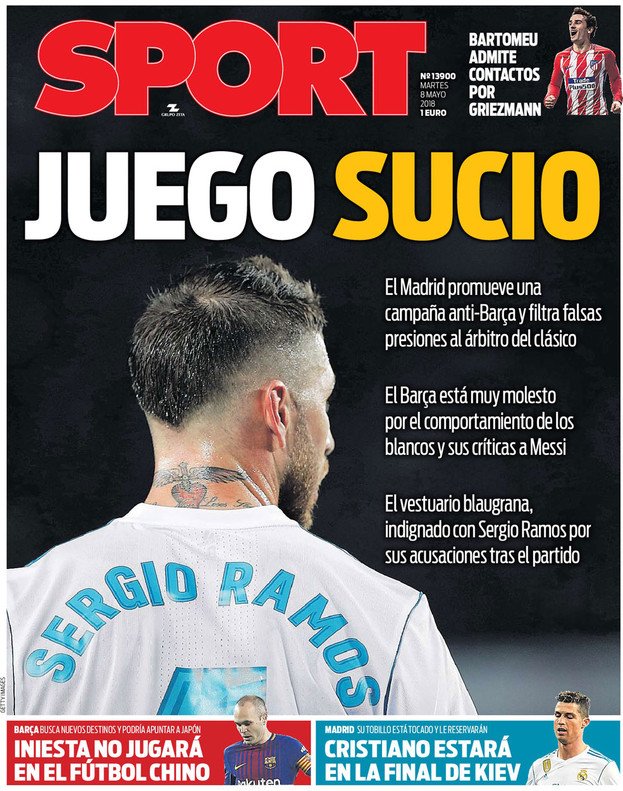 El medio catalán abre su portada con una auténtica indirecta a Sergio Ramos. Sport señala a Ramos por haber mentido sobre los gestos de Messi.