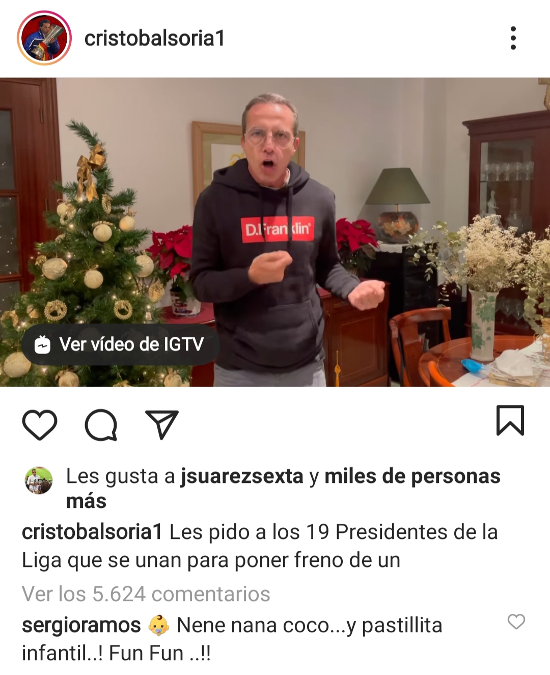 Sergio Ramos trolea a Cristóbal Soria tras las ridículas quejas por el VAR