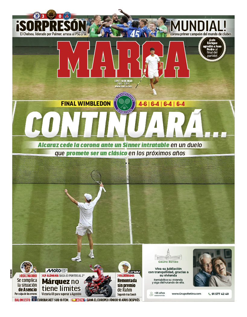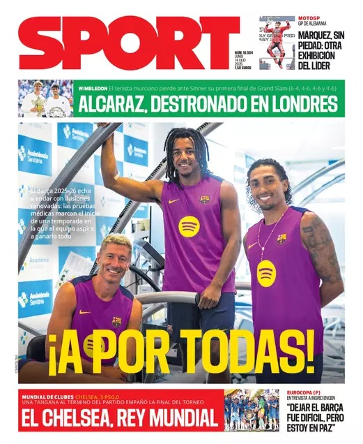 Carlos Alcaraz y el Chelsea, entre los protagonistas de las portadas deportivas de este lunes 14 de julio de 2025.