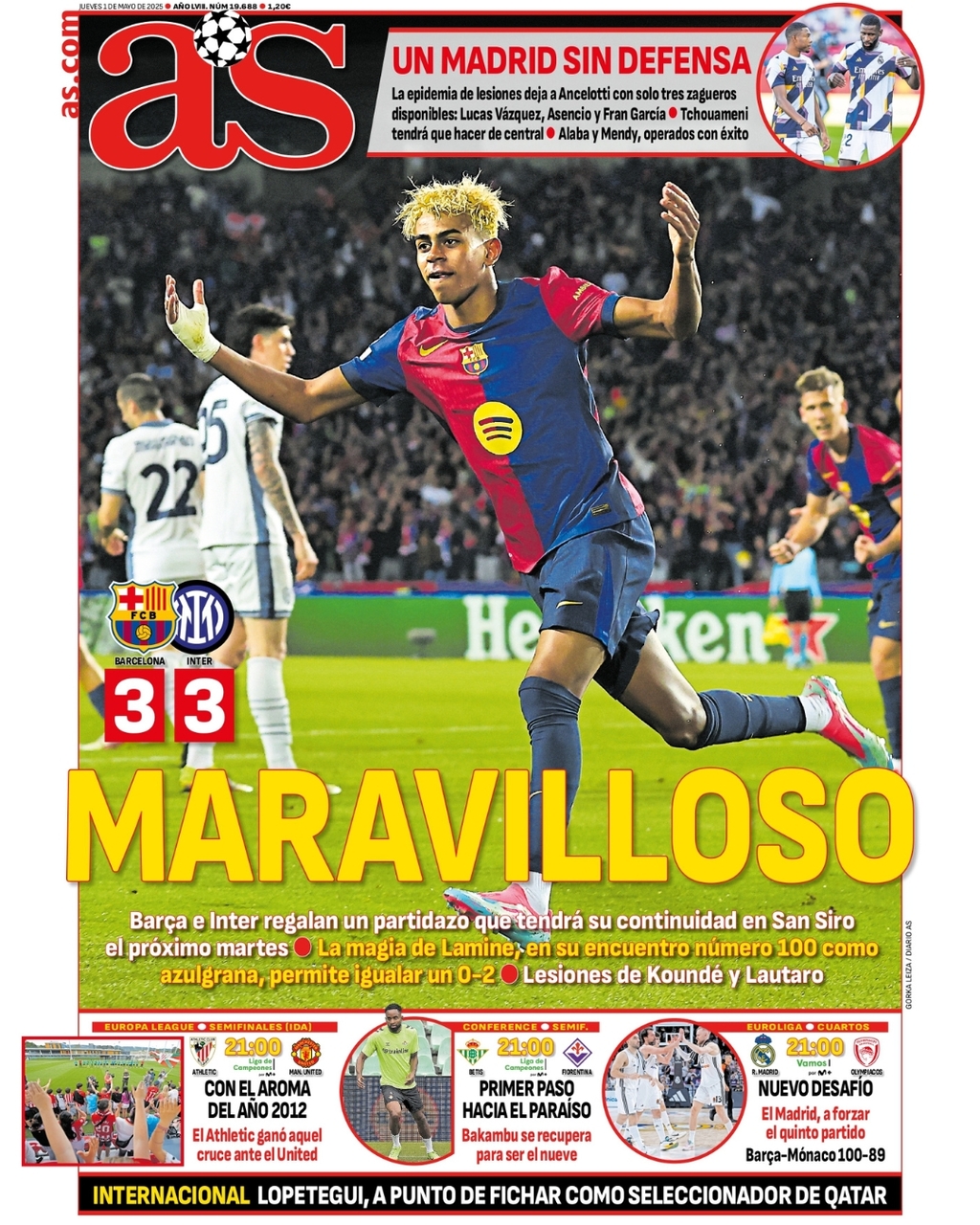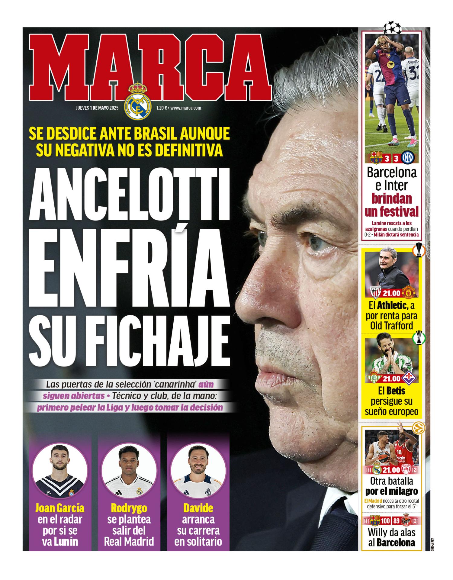 Ancelotti y Lamine Yamal protagonizan las portadas del jueves