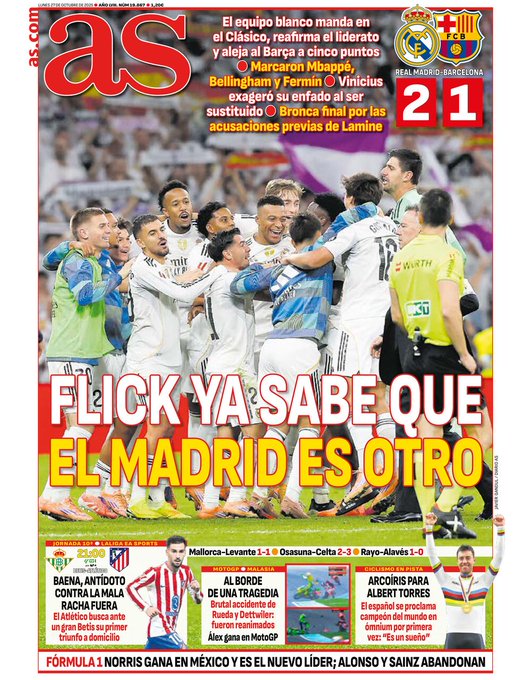 El Diario AS ha decidido destacar en su portada el triunfo del Real Madrid en el Clásico, aludiendo a la nueva versión merengue.