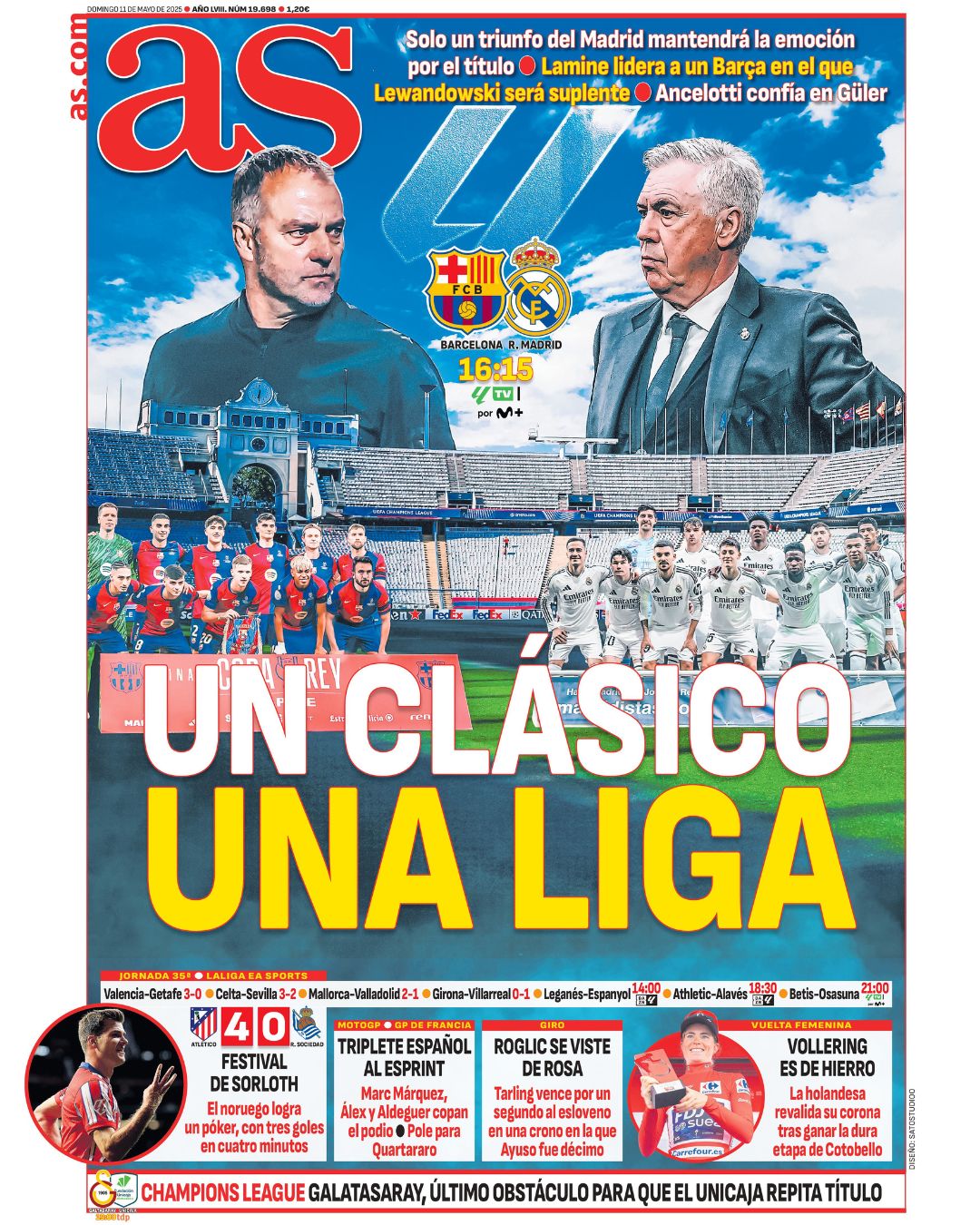 AS abre con la previa del Barcelona - Real Madrid : “Un clásico una liga”