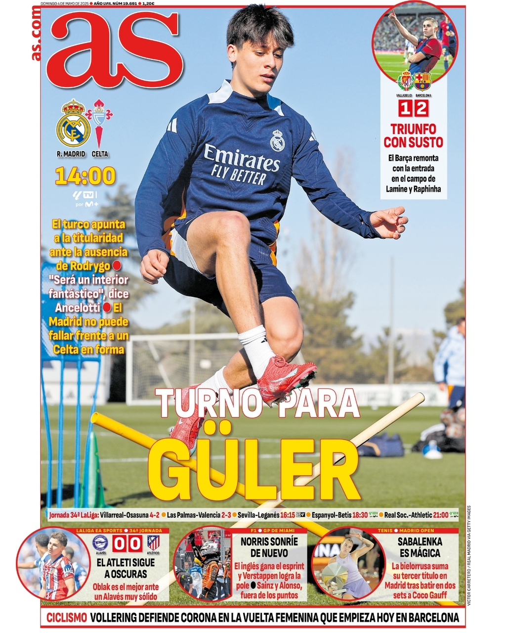 AS abre con la previa del Real Madrid - Celta: “Turno para Güler”