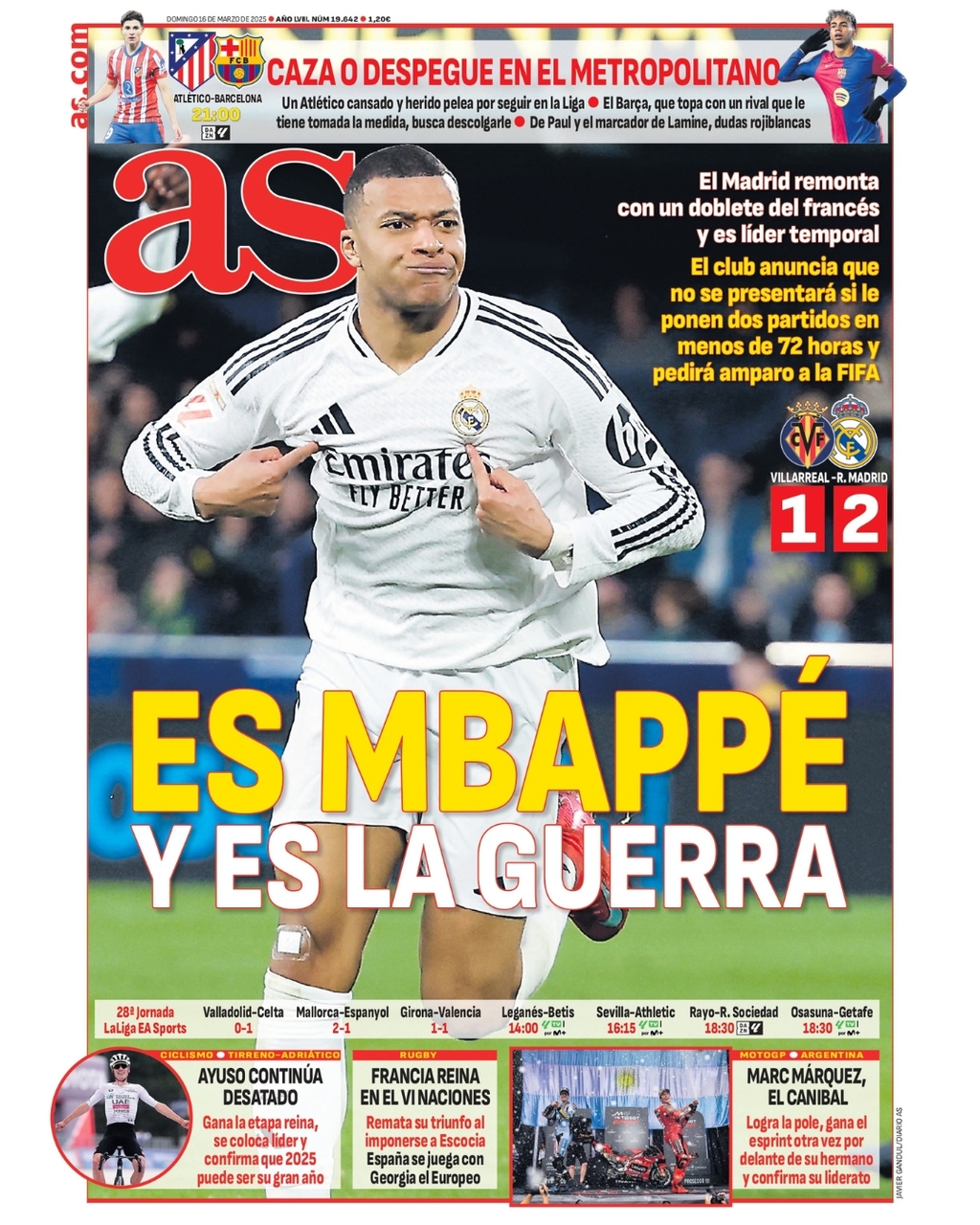 AS abre con la victoria del Real Madrid: "Es Mbappé y es la guerra"