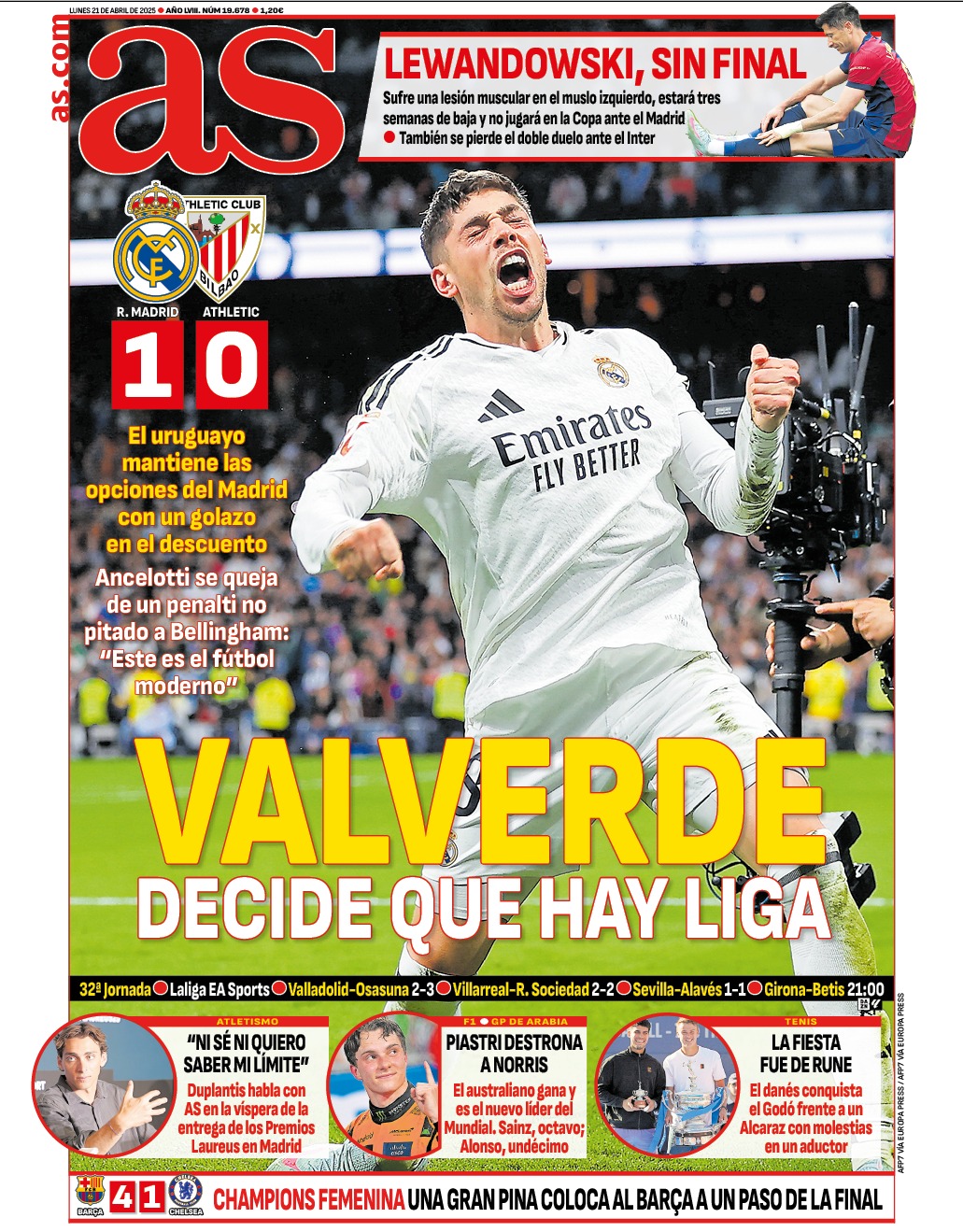 AS abre con la victoria del Real Madrid: "Valverde decide que hay liga”