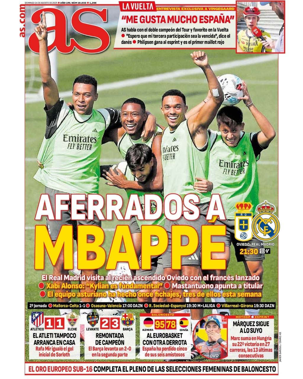 AS abre en su portada con el Oviedo - Real Madrid: "Aferrados a Mbappé"