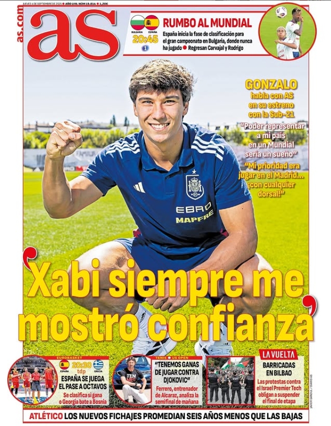 El diario AS destaca en su portada una entrevista con Gonzalo García, quien ha hablado abiertamente sobre su continuidad en el Real Madrid y la importancia que le ha dado Xabi Alonso.