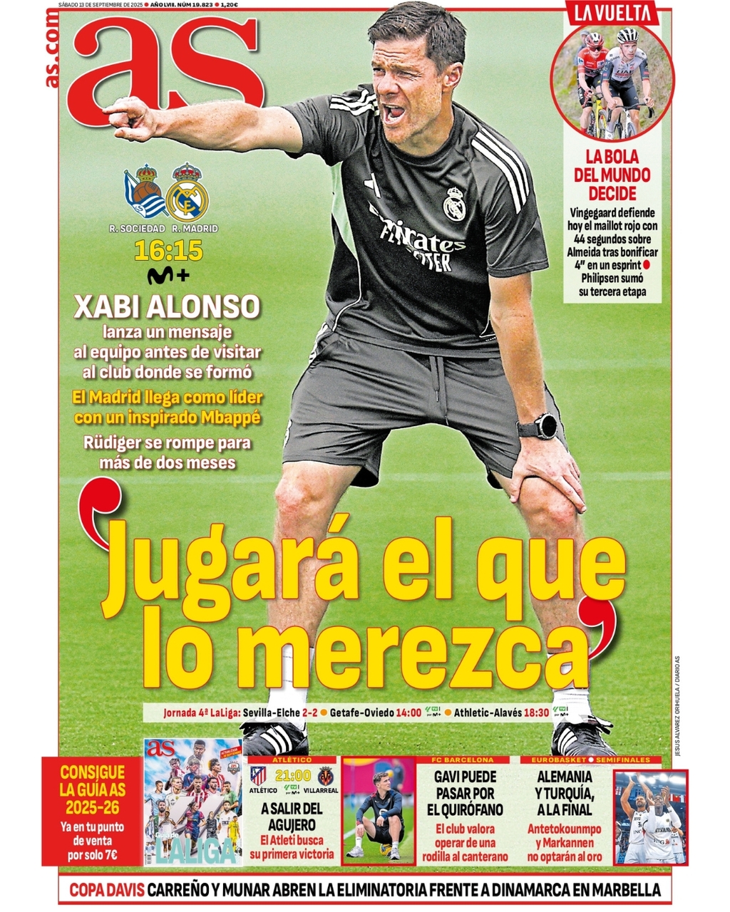 El diario AS destaca en su portada las palabras de Xabi Alonso en rueda de prensa: "Jugará el que lo merezca", lanzando un claro mensaje a la plantilla para que trabajen y estén siempre preparados.