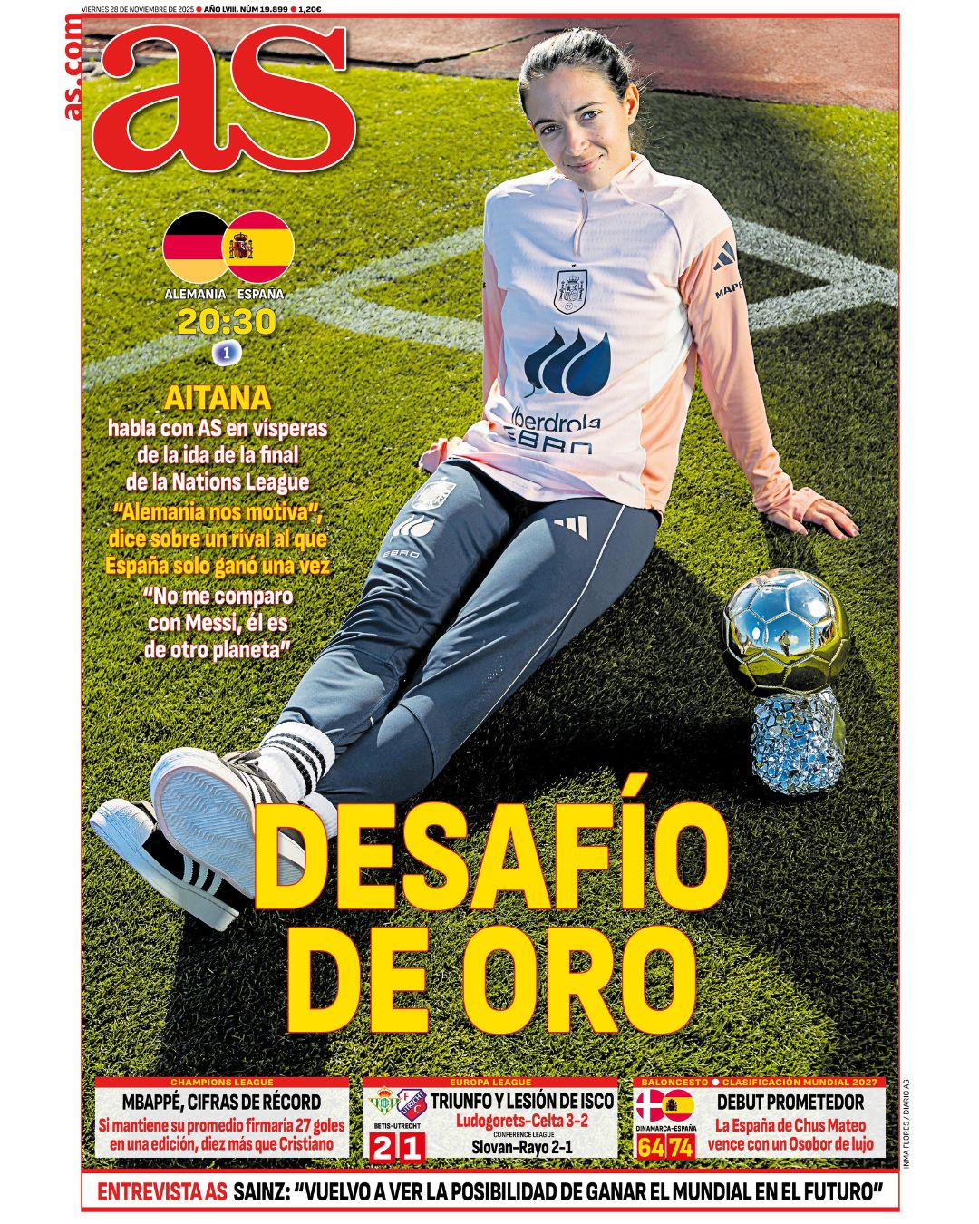 El AS saca en primera plana para este viernes las cifras récord de Kylian Mbappé, que está completando una temporada espectacular en el Real Madrid anotando el 55% de los goles madridistas.