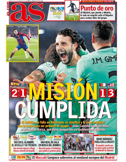 ¡Así abren las portadas deportivas en la previa del Real Madrid - Nápoles!
