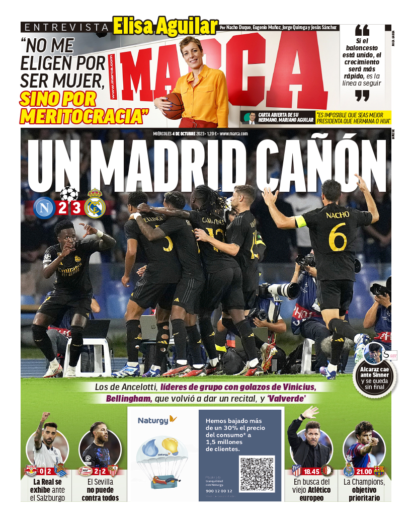 Así abren las portadas deportivas tras el Nápoles - Real Madrid