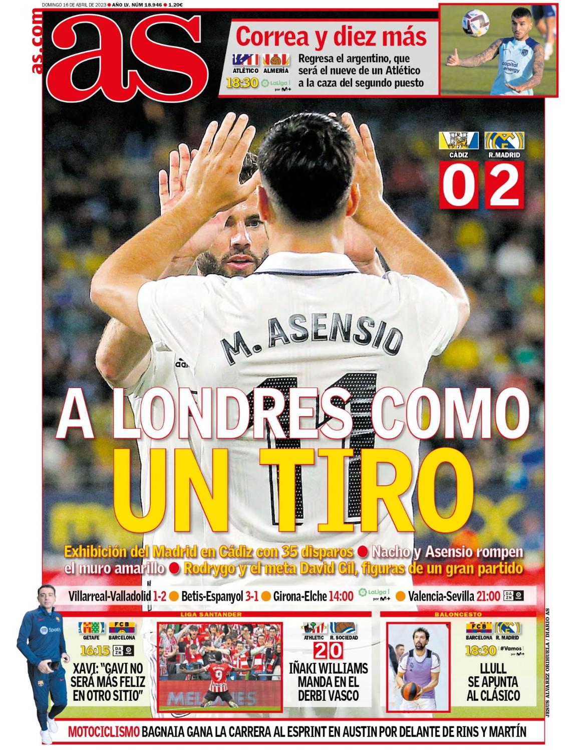 AS saca en primera plana la vuelta del Real Madrid al Santiago Bernabéu