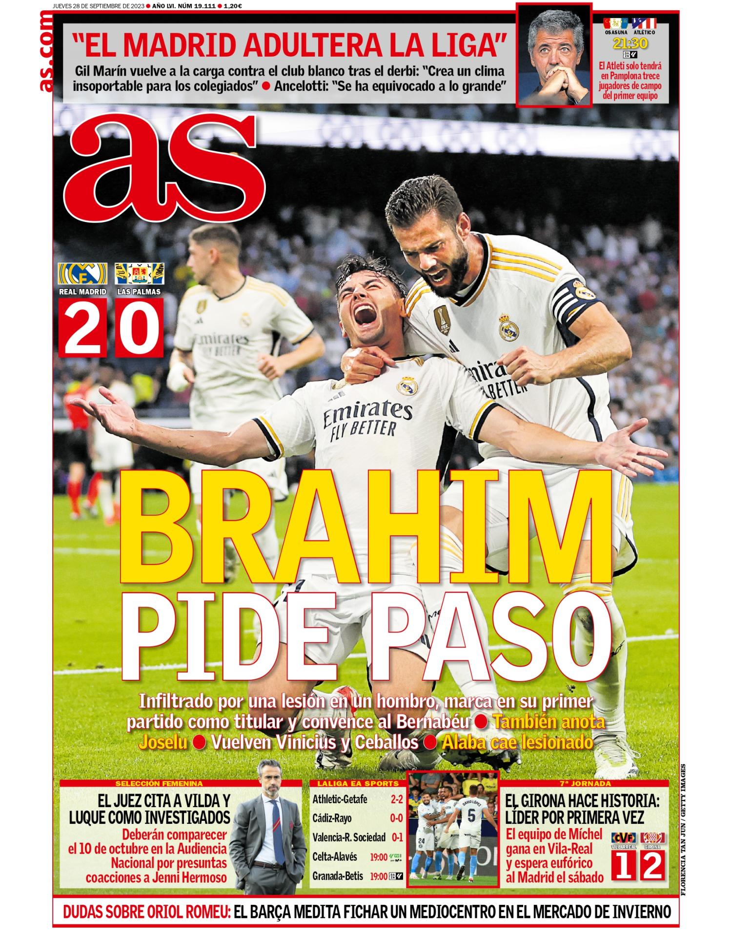 Brahim y el Real Madrid, protagonistas del día en las portadas