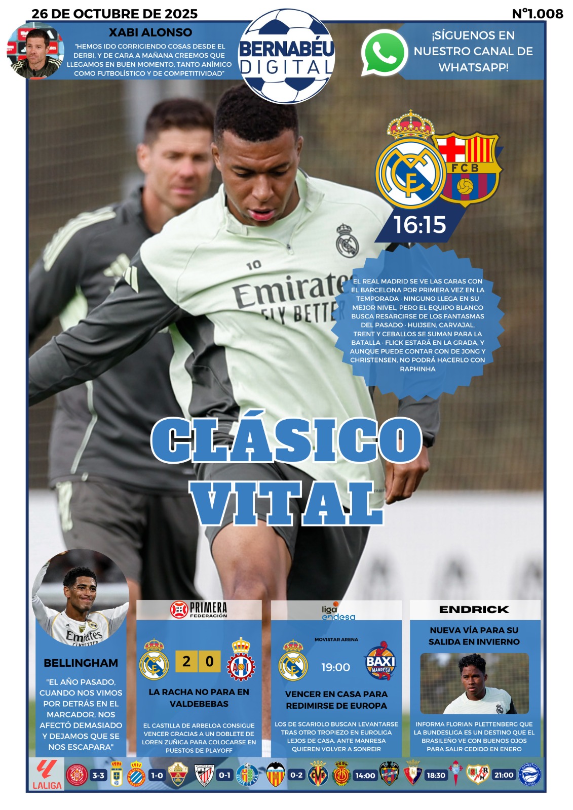 Bernabéu Digital destaca en su portada la previa del clásico entre Real Madrid y Barcelona, con la importancia del partido. También hay lugar para las palabras de Xabi Alonso y Jude Bellingham.