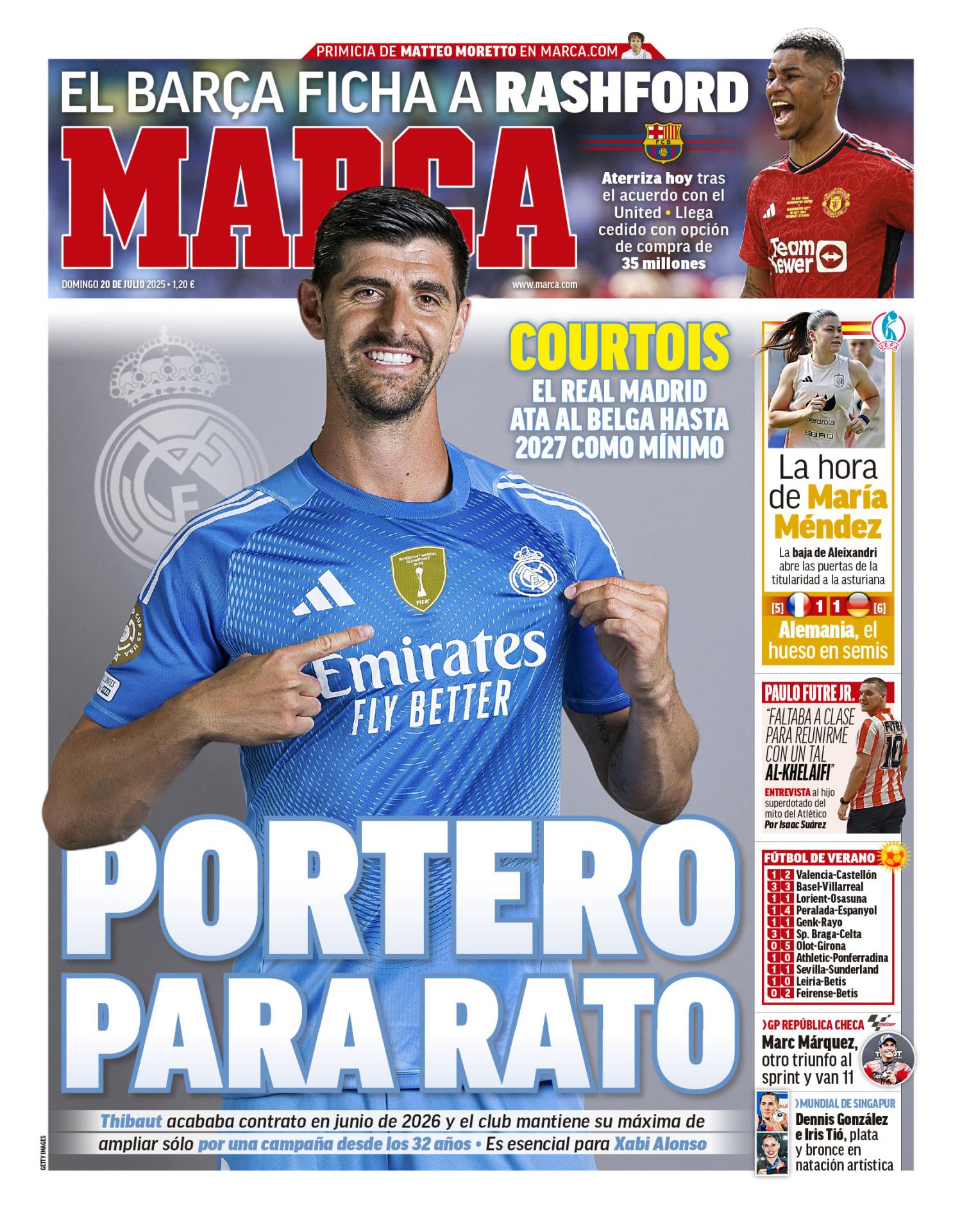 Courtois y Vinicius acaparan las portadas de este domingo 20 de julio