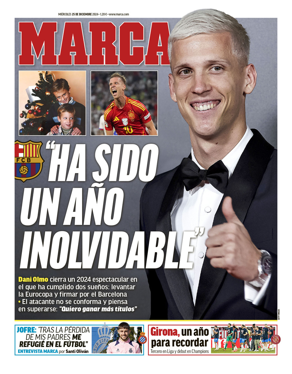 Este martes 25 de diciembre de 2024, el diario Marca saca en portada una entrevista con Dani Olmo, quien señala que "ha sido un año inolvidable".
