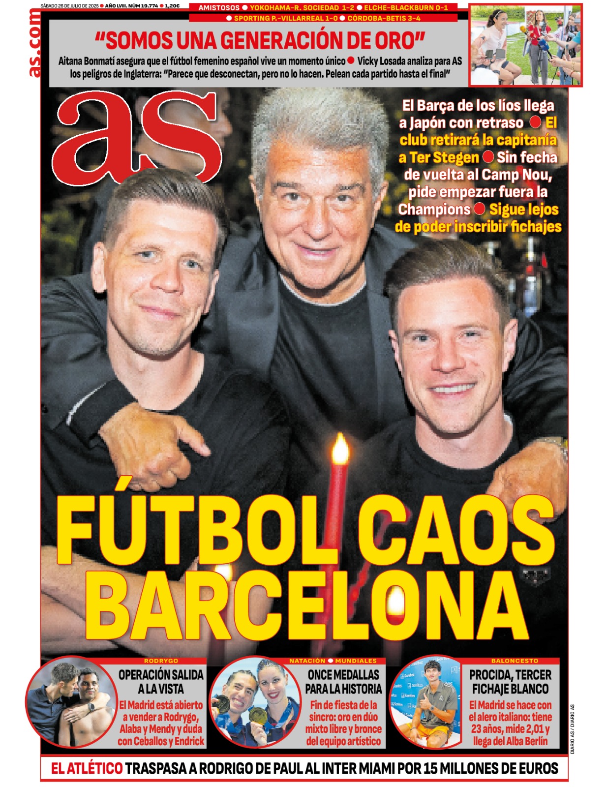 Para este sábado 26 de julio, el diario AS destaca la operación salida que tendrá lugar en el Real Madrid este verano. Asimismo, Rodrygo Goes, David Alaba y Ferland Mendy son claros candidatos a salir, mientras que Dani Ceballos y Endrick están en la cuerda floja.