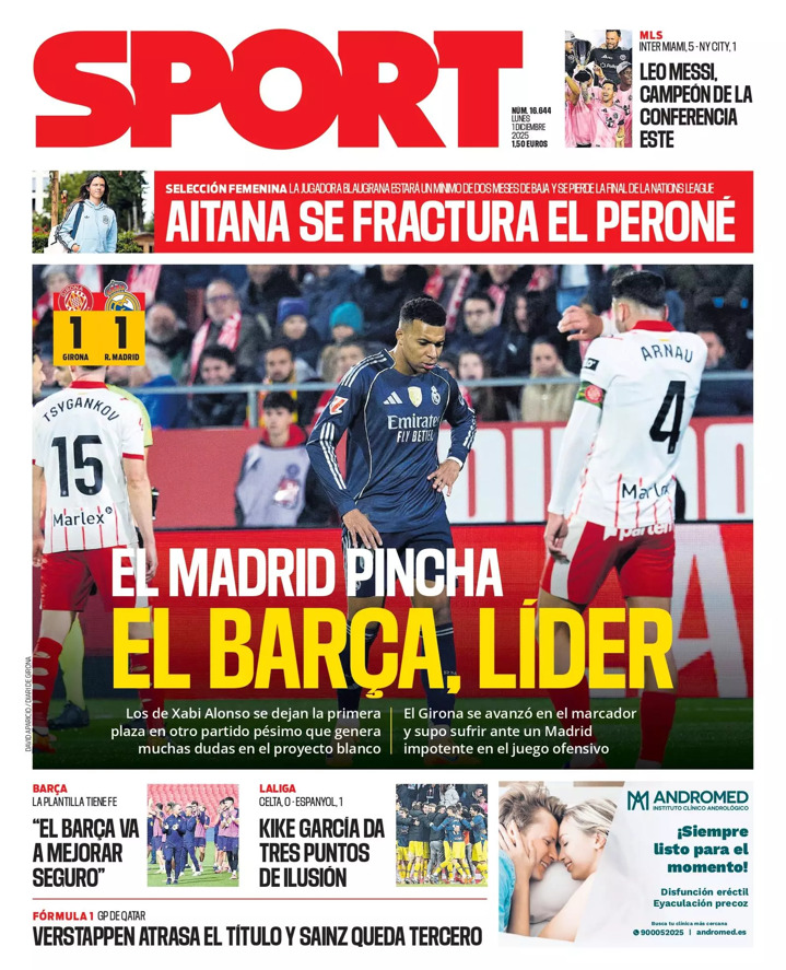 El empate del Real Madrid, en las portadas de la prensa deportiva