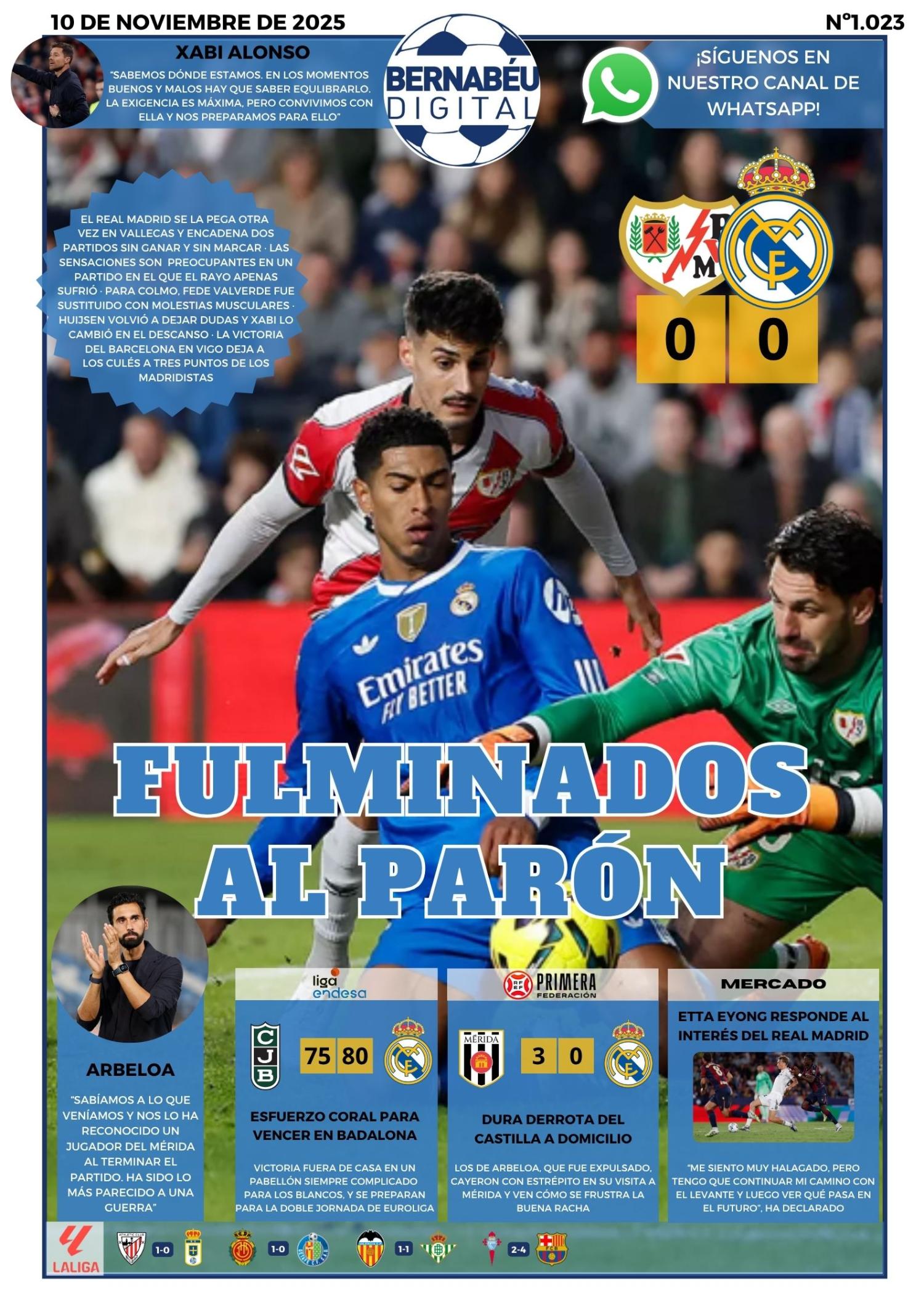 En nuestra portada del lunes 10 de noviembre de 2025, en Bernabéu Digital hemos decidido abrir con el Rayo Vallecano 0-0 Real Madrid.