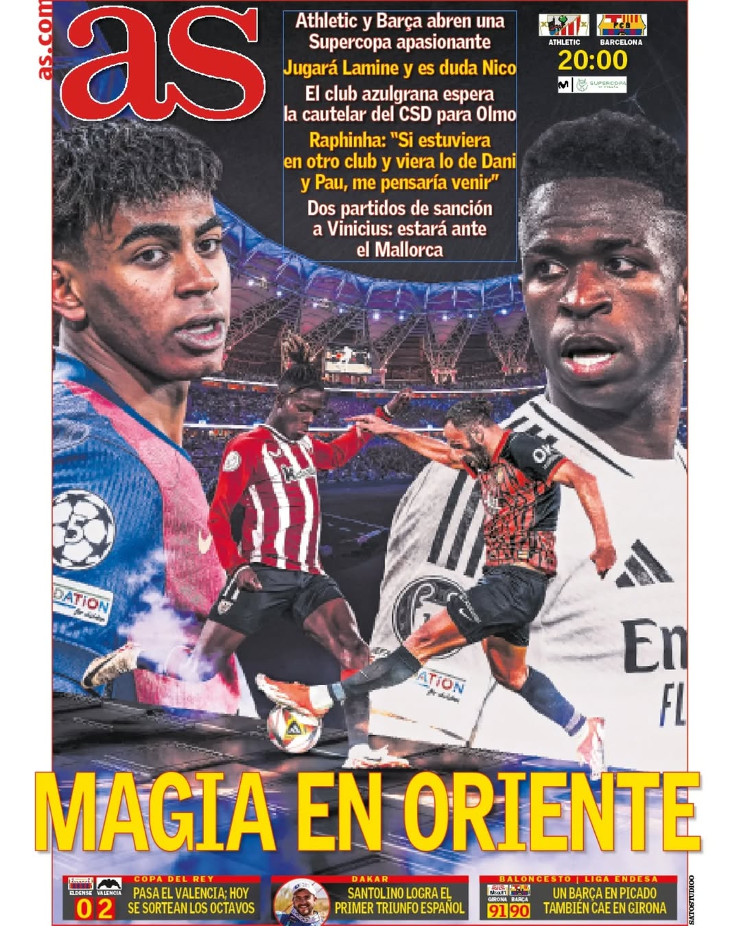 El inicio de la Supercopa de España copa las portadas deportivas del 8 de enero