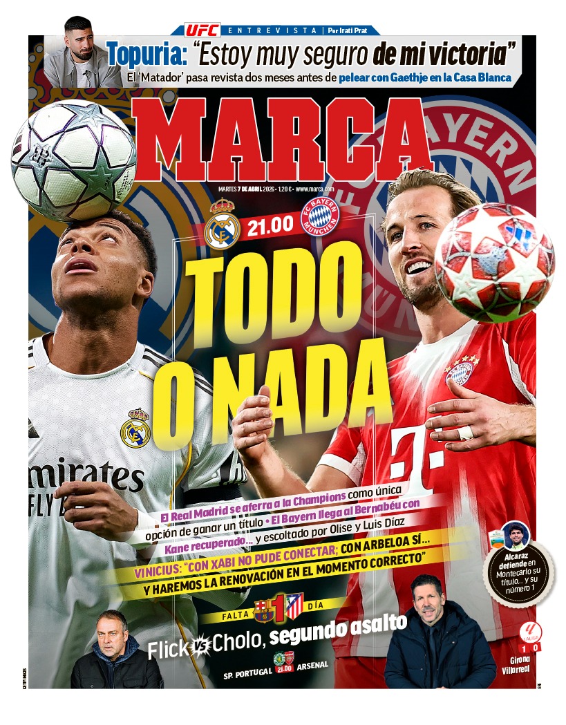 El partidazo de esta noche entre Real Madrid y Bayern son las portadas de hoy