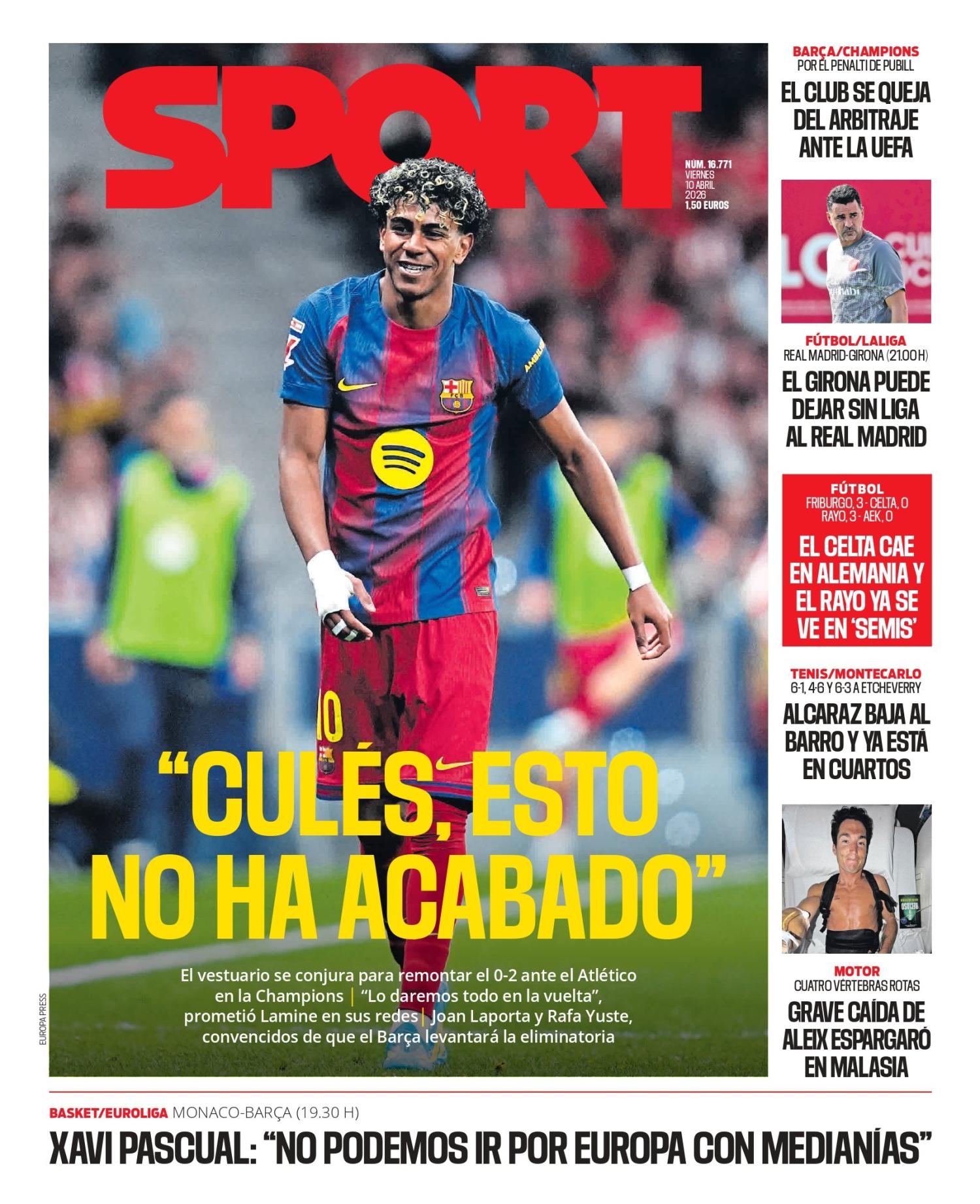 Sport pone como principal protagonista a Lamine Yamal por sus palabras referente al partido de vuelta donde el Barça tendrá que remontar el próximo martes un resultado adverso de 0-2 en el campo del Atleti.