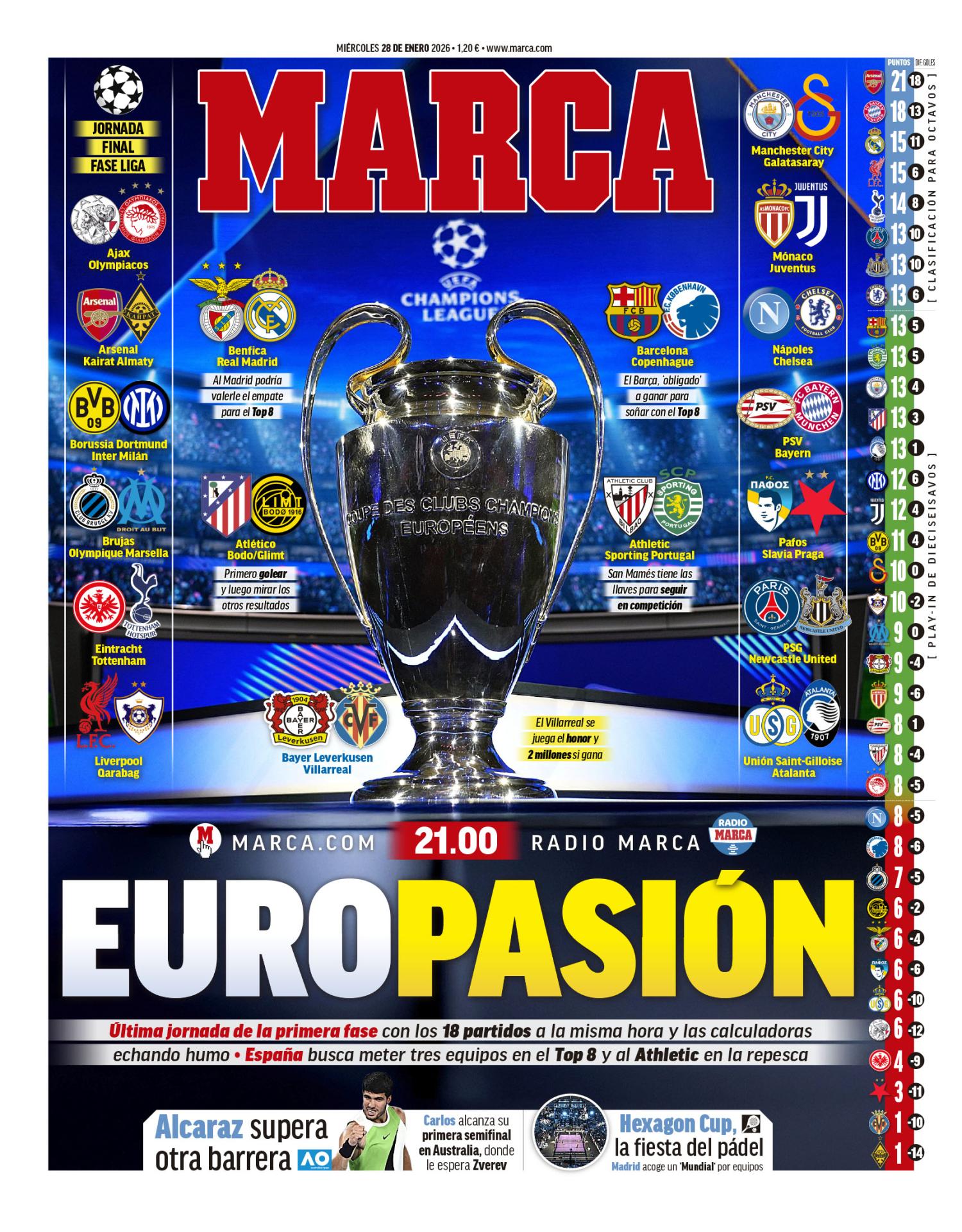 En Marca lo denominan como "Europasión", también recalcando que el Real Madrid tiene muy de cara pasar a octavos entre los ocho primeros clasificados.