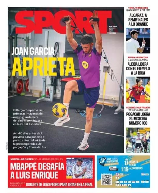 copa las portadas deportivas de este miércoles 9 de julio de 2025.