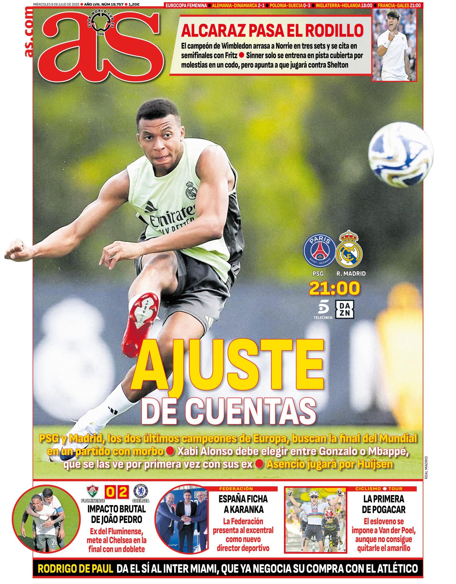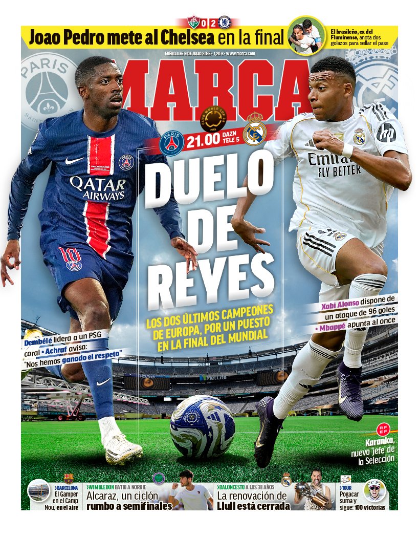 El PSG - Real Madrid copa las portadas del 9 de julio de 2025