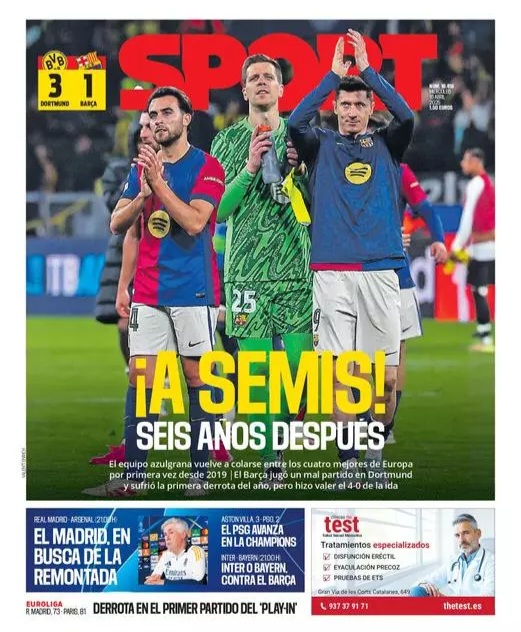 El partido entre el Real Madrid y el Arsenal en el Santiago Bernabéu copa las portadas deportivas de este miércoles 16 de abril de 2025.