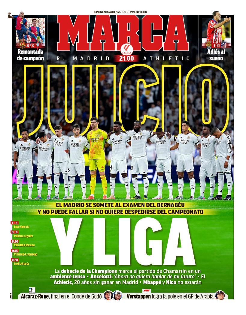 El Real Madrid - Athletic protagoniza las portadas deportivas del domingo